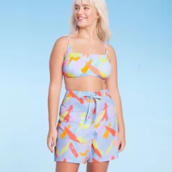 Women’s Ribbed Extra Cheeky Extra High Leg Bikini Bottom – Wild Fable⢠Blue/Green/Pink Striped