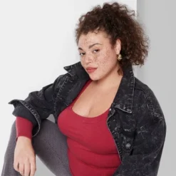 Long-sleeve tee from Wild Fable⢠in a solid hue. Designed in a fitted silhouette with a length that hits at the hip. Features a deep scoop neckline. Lightweight fabric with a hint of spandex offers all-day stretchy comfort.