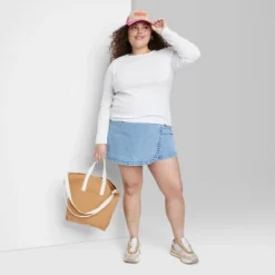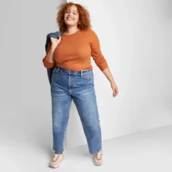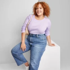 Long-sleeve T-shirt from Wild Fable⢠tailored in a regular-fit silhouette with a length that hits below the waist. Made from soft cotton fabric with a hint of spandex for stretchy comfort. Designed with a classic round neckline in a solid hue.