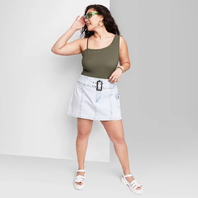 Knit bodysuit from Wild Fable⢠in a solid hue. Features an asymmetrical neckline with regular sleeveless style on the left shoulder, paired with an adjustable slender strap on the right. Tailored in a slim-fit silhouette and made of heavyweight recycled polyester with spandex for comfortable, flexible wear. The open back and statement cutouts complete the look.