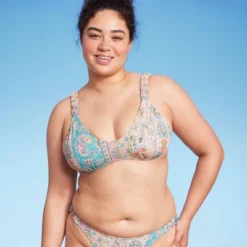 Bralette bikini top from Wild Fable⢠adorned with adjustable scrunchie-style shoulder straps. Made of soft, stretchy fabric with removable cups. Back hook-and-loop fastener helps you find a secure fit.