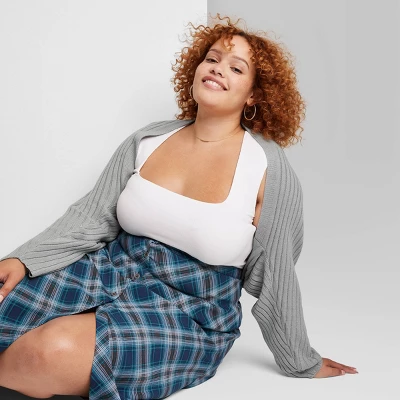 Slouchy shrug sweater from Wild Fable⢠in a solid color. Made of heavyweight cotton fabric with a ribbed texture and features a loose fit for comfort and style. The at-waist length and open neckline add to the on-trend look.