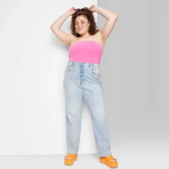 Full-length jeans from Wild Fable⢠with a light-wash finish and distressed details. Tailored in a straight fit with a sculpting, super high-rise cut. Sport a belt-loop waistband with zip fly and button fastening for a secure fit. Made of cotton with a hint of stretch for breathable wear that moves with you. Five handy pockets complete the look.